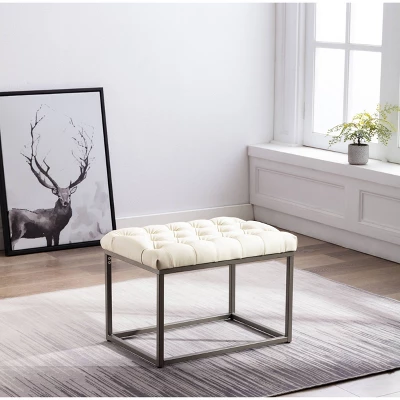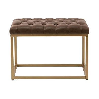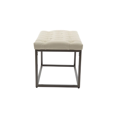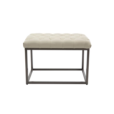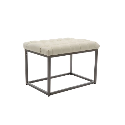 Simple and sophisticated yet highly functional, this 24 inch rectangle ottoman is an easy way to add dimension and character to your space. With an industrial metal base and button tufted upholstered top, this rectangle ottoman is an easy way to bring current and classic design elements together in any room. You can even enjoy building visual storage under the top and show your own personal style with different books or accessories. This 24″ rectangle ottoman will be a conversation piece and an ideal seating or décor solution in your living room, entryway, or bedroom. Try two together to make a more impactful statement. Designed to work with a range of existing interior styles and an easy way to give any room an update at a good value.