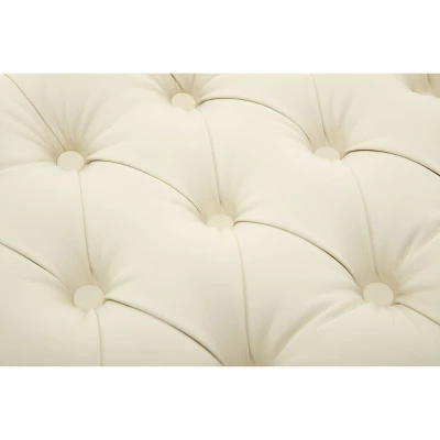 - Deep button tufted upholstered top adds a touch of elegance to your space