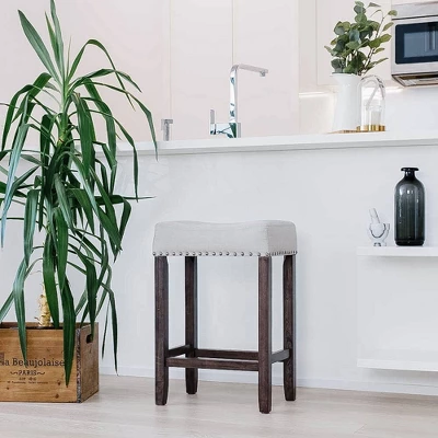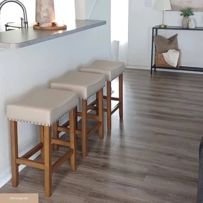 24″ Wood Upholstered Saddle Seat Barstool – Nathan James