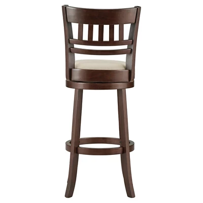 Classic and sturdy the Wolcott Swivel Barstool has a timeless look that will add a rich pub-like feel to your basement bar or your great room bar-height counter. Crafted in a sturdy hardwood, this stool has all the classic features you are looking for such as: an open slatted back, a super comfortable padded seat, flared legs and a swivel base. A great way to add an update to your traditional or transitional decor style. Choose from 4 rich finish and upholstery combinations.