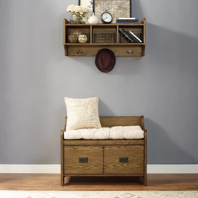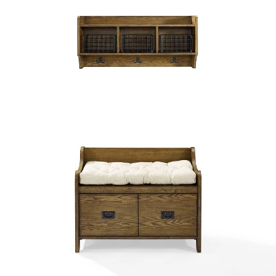 Keep your entryway clutter-free with the Fremont Entryway Kit. This two-piece kit includes a shelf and a bench. The shelf offers three coat hooks and three galvanized wire baskets for storage. The bench adds extra seating, as well as, two easily accessible storage cubbies accented with antique hardware. This kit can be easily paired with the rest of the Freemont Collection.