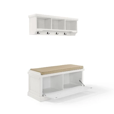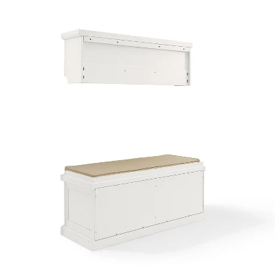 You’ll be ready to hang your hat and slip off your shoes when you come home to the Seaside 2pc Entryway Set. The storage bench and wall-mounted shelf are both finished in a beautiful distressed white with beadboard accents, bringing an upscale coastal vibe to your foyer or mudroom. The storage shelf mounts flush against the wall and features three 8.875” deep cubbies plus four double prong hooks. For added organization, the cushioned bench features two large compartments behind a drop-down door, just right for shoes or larger everyday items. Keep the busiest area of your home clutter-free with the Seaside 2pc Entryway Set.