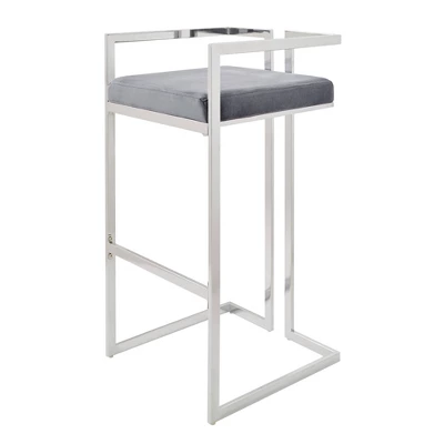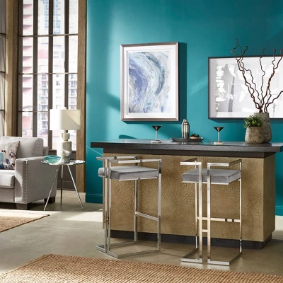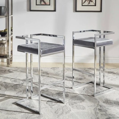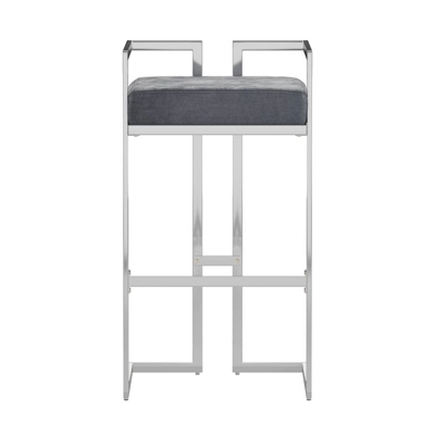 Create a stunning art decor appearance that stands out in your kitchen with this barstool. The chic barstool features a luxurious blue steel velvet upholstery foam filled for ample comfort and a pressed metal frame for a contemporary appearance that lasts. The bold silhouette and high-end finishes create eye-catching detail that is sure to stand out beautifully in your kitchen. This bar stool looks best in a modern, contemporary, or transitional styled space. This barstool was built to last, with enduring comfort in mind.
