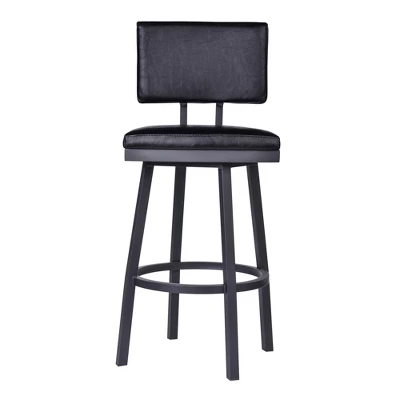 The Armen Living balboa contemporary armless barstool is an excellent choice for the modern household. Featuring an ideal combination of durable brushed stainless steel metal and sleek vintage gray faux leather upholstery, the balboa is certain to attract attention. The Bilboa low upholstered back is designed to provide ideal lumbar support while serving as a beautiful accent. The square upholstered seat is foam padded and features a 360 degree swivel mechanism, allowing for exceptional user mobility while seated. The added round footrest acts as a terrific aesthetic balance while also serving as a great support piece. The Bilboa legs are tipped with floor protectors, assuring that the barstool will not damage hardwood or tile floors when moved. The beautiful armless balboa barstool is sold in two industry standard sizes; 26 inch counter and 30 inch bar Height.