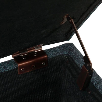 This luxury 32″ square storage ottoman offers an easy and stylish storage solution for pillows, blankets, books or toys. The textured navy woven fabric on this square ottoman makes it suitable as a coffee table in a living room or family room, or as extra seating in a study. The hinged lid allows easy access to items nearby but out of view. With tapered wood legs in a dark walnut finish, this large storage ottoman offers a stylish storage and seating solution for years to come. Easy to assemble and maintain.