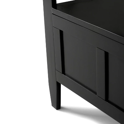 Riverside Solid Wood 48 inch Wide Contemporary Entryway Storage Bench. Style includes shaker square front panels, vertical slat back and slightly tapered legs. Large, spacious entryway bench seats 2 comfortably. Handcrafted with care using the finest quality solid wood. Efforts are made to reproduce accurate colors, variations in color may occur due to computer monitor and photography. The product is warranted to be free from defects in material and workmanship for a period of (1) year from the date of purchase to the original owner.