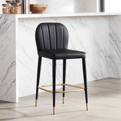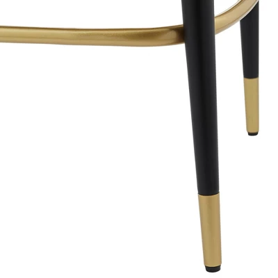 Entertain dinner party guests at your kitchen counter or island with the comfortable seating provided by the Dylan counter stool. The soft black faux leather seat and back provide welcome relief, coupled with classy mid-century modern style. A gold finish metal frame adds a complementary stylish shine to complete the look.