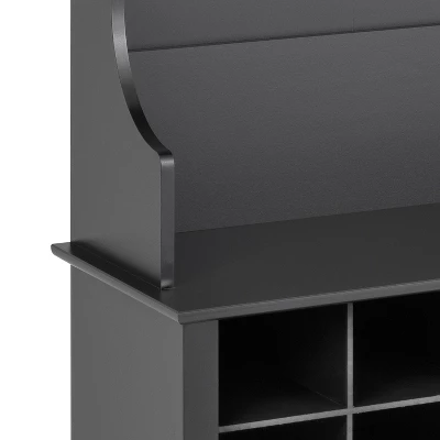 Organize and style your entryway with the Prepac 60″ Wide Hall Tree. Standing at 77″ tall and 60″ wide, this hall tree will provide all the storage space needed for your entryway belongings. Store your larger items in the 3 upper compartments, and hang your jackets, scarves, purses and hats on the 6 strong double coat hooks. A wide bench, with plenty of room, sits on top of 24 individual shoe cubbies. Each shoe cubby is spacious enough to hold a pair of size 13 men’s shoes, keeping them neatly stored and out of the way. The Prepac Hall Tree’s sleek design fits in with all decors and provides the essential storage space you need. Constructed from non-toxic, CARB-2 compliant laminated composite woods with a sturdy MDF backer. Ships Ready to Assemble, includes an instruction booklet for easy assembly and has a 5-year manufacturer’s limited warranty on parts. Manufactured in Canada and meets all North American safety standards.
