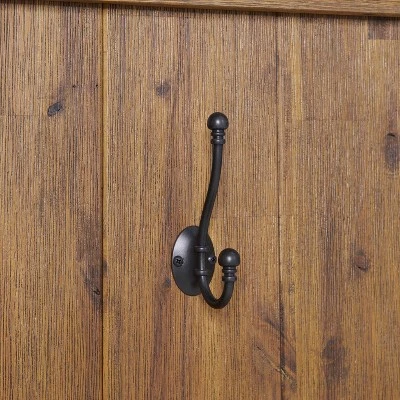 Organize your entryway, mudroom or living space with this gorgeous acacia wood hall tree. The hall tree is both beautiful and functional, providing ample storage and style for your home’s entryway or hallway. This rustic hall tree has a minimalist look made from solid acacia wood. The natural aged stain highlights the subtle imperfections such as knots and cracks that are part of the wood’s character. This versatile piece features a bench for you to comfortably sit and take off your shoes for storing on the shelf underneath. A large upper shelf allows you to display hats or other items, while the seven metal coat hooks provide enough space for neatly hanging your jackets, scarves, umbrellas, or handbags.