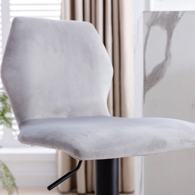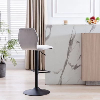 Elevate the style of your kitchen with the ACEssentials Waverly Gaslift Counter Stool. The metal pedestal base features a curved footrest for optimal comfort. For a modern look, the sleek design features gray velvet upholstery and a black powder-coated finish base. The adjustable seat smoothly raises from counter height to bar height, ensuring this stool is a perfect fit for your seating area. This stylish stool is the ideal piece for any kitchen counter or bar.