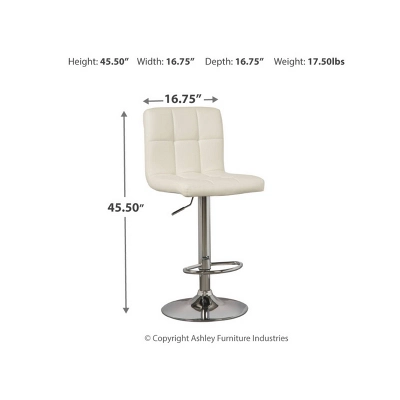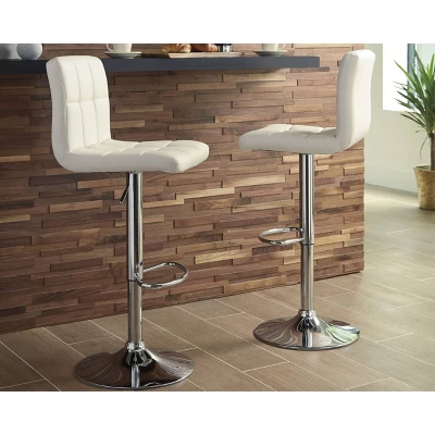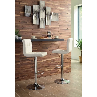 Here’s a bar stool that rises to the occasion. It is sleek and modern with a chrome-tone finish. Square-tufted, bone-colored faux leather upholstery makes this bar stool pop. It easily adjusts from counter to pub height making it as versatile as it is attractive. This tall swivel bar stool is a perfect seat for any trendy home bar or game room. Dimensions: 16″W x 18″D x 37/45″H