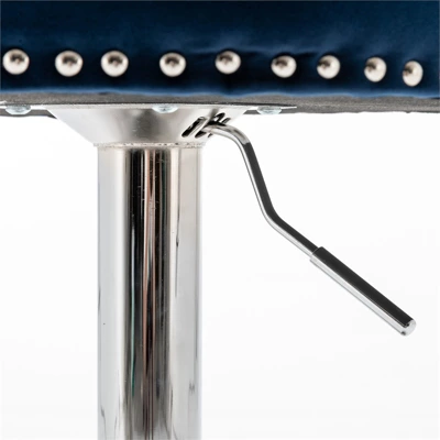 The Better Home Products Monroe Velvet Tufted Adjustable Swivel Bar Stool Set is designed for strength, durability, and stability, as well as high quality and comfort. Skin-touch velvet upholstery, tufted button, nail-head stitches, and chrome parts make up the elegant appearance, which combines both contemporary and retro. 360-degree swivels for rotating around freely. A lift bar is equipped, you can effortlessly adjust in height with only one hand. These functions help you to find the right and comfortable position to sit by your counter table. It’s durable enough as a piece of daily furniture that perfectly match your counter for lazy breakfasts, casual meals, or snacks. Available in Black, Gray and Blue color options.Features : Finish: Blue | Set of 2 luxe counter height bar stools.Premium Fabric: The counter stool is upholstered by skin-touch velvet, detailed with the tufted button and nail-head trim, which creates a noble mood for the surrounding.Encircled Backrest: The one-piece mid-height backrest and low side brackets perfectly wrap your body as you sit on it and provides superior comfort and support for your back.Adjustable Height: With the adjustable height, the Monroe bar chairs are suitable for tables of various heights. The height adjust handle is located under the seat and can easily be accessed while sitting on chair.360° Rotation: These modern counter height swivel bar stools can freely rotate 360° adding to the ease and comfort.Footstool: Relax your feet, the pedal surface is electrically chrome finish, very wear-resistant and will not rust, easy to clean.Sturdy and Stable: The diameter of the bottom disc is 19″, which makes the Monroe bar chairs more stable than any other bar stools available in market.Protection: The base is not easy to tilt and has plastic glide to protect the floor from scratches and ensure no noise when moving the stool.Strong bearing capacity: The bar chair is made of high-quality materials, with strong bearing capacity, up to 300 lbs.Care: The surface is easy to take care of, simply wipe clean with a cloth dampened in water.Easy to install: Instructions and installation tools are included in the package.Specifications : Shelf Dimensions : 17 ” H x19 ” W x 17 “DChair Weight : 21 lbs.Seat height maximum floor to seat top : 33 inSeat height minimum floor to seat top : 25 inAssembly Required : Yes