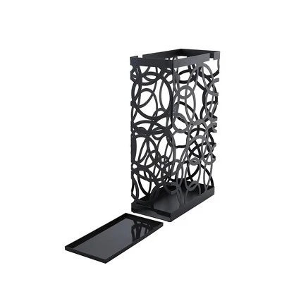 The BirdRock Home Umbrella Holder is a staple household item for rainy weather. Safely store, organize, or dry umbrellas with this freestanding holder. You’ll never have another wet umbrella on the floor again. The holder also features a unique water collection tray that slides out so you can easily empty out the water once it’s full. Perfect for having in foyers, living rooms, kitchens, garages, laundry rooms, hallways, entryways, and even offices. Modern style and simple black iron design will complement any contemporary room decor. Sturdy 100% iron construction ensures umbrellas are secure at all times. The stand is also powder coated and rust resistant, so it can stand up to continuous use. A slim frame allows an umbrella holder to be stored even in the smallest spaces. Makes a great housewarming gift!