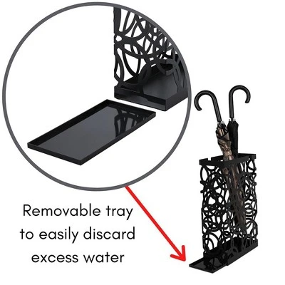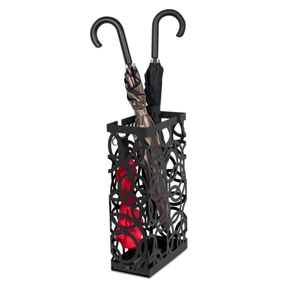 - VERSATILE: Safely store, organize, or dry umbrellas with this free-standing holder. You’ll never have another wet umbrella on the floor again. The holder also works great for walking sticks, canes or ski poles
