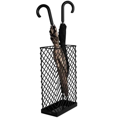 - VERSATILE: Safely store, organize, or dry umbrellas with this free-standing holder. You’ll never have another wet umbrella on the floor again. The holder also works great for walking sticks, canes or ski poles