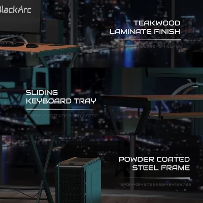 Installation Complete. Elevate your environment with this extra large and fully loaded 9inety Degree gaming desk. New age powder coated framing provides a space defining design perfect in corners or out in the open. The spacious L-shaped surface allows you to house multiple monitors, consoles, and other gaming equipment. Stealthily crafted with a sliding keyboard tray. Additional hardware includes protective floor glides. Additional Features: Pull-Out Keyboard, Holds up to 165 LBS. Static Weight Capacity, Protective Floor Glides