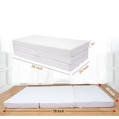 Introducing the Cheer Collection Trifold Mattress – an answer to spontaneous sleepovers, unexpected guests, and outdoor adventures. This mattress offers a spacious and comfortable rest. Crafted with an emphasis on comfort, it boasts a plush foam core wrapped in a luxurious rayon from bamboo fabric. Its ventilated mesh sides ensure a breezy and rejuvenating sleep experience.Versatility is at its core. Within seconds, transform any floor into a cozy resting spot. Be it in a dorm, during travels, or for those fun camping nights, this mattress offers flexibility without compromising on comfort. And when it’s not in use? Its trifold design means it stores away with ease, even in the smallest of spaces.The inclusion of a soft, removable rayon from bamboo cover not only feels heavenly against the skin but is also machine-washable, ensuring longevity and freshness. Portability is amplified with the addition of carry handles, making it a breeze to transport for those outdoor excursions.Beyond just sleeping, it’s a multipurpose gem. Fold it to craft a DIY sofa, spread it out for kids to play, or simply lay it down with a book. Every home deserves the adaptability and convenience of the Cheer Collection Trifold Mattress. Elevate your comfort, anywhere, anytime.