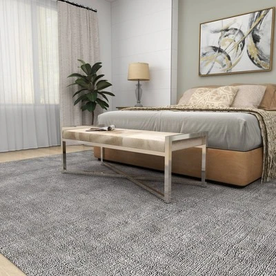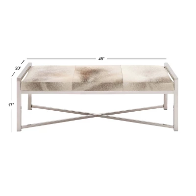 Contemporary Stainless Steel Rectangular Cowhide Bench – Olivia & May