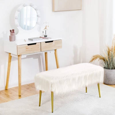 - Vanity Bench for Visual Enjoyment: This vanity bench features a furry faux fur seat and golden legs, striking the perfect balance between elegance and simplicity. It is a visual enjoyment for any room in your home, giving in the sophisticated and modern decoration.