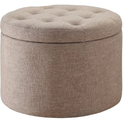 The Designs4Comfort Round Shoe Ottoman is the most clever ottoman ever. Rest your feet, use it as extra seatingâand pop its luxe button-tufted top for secret storage for 12 pairs of shoes. The faux leather finish adds to its practical elegance. Rest your feet and store your belongings at the same time. Totally fab. Totally functional.