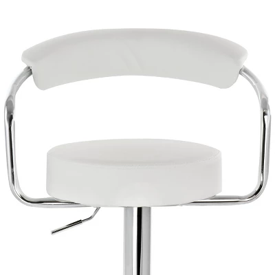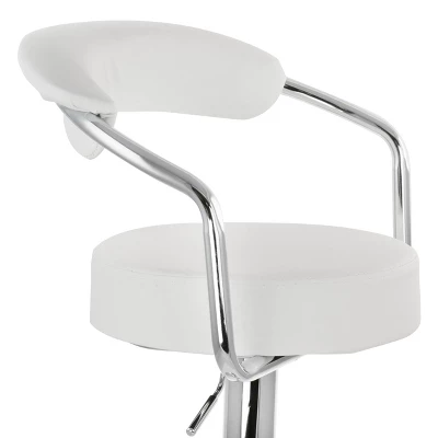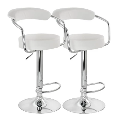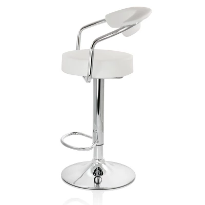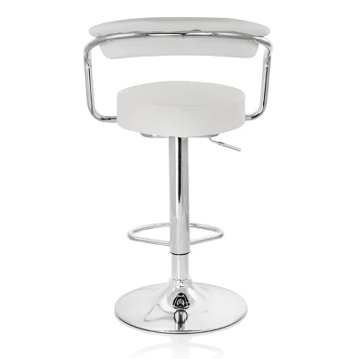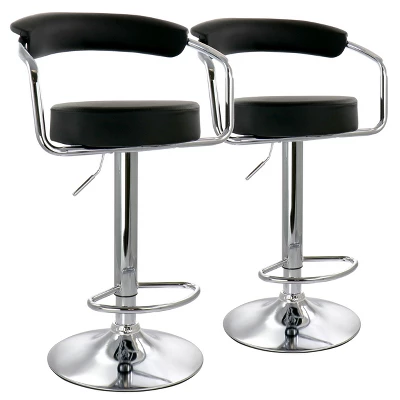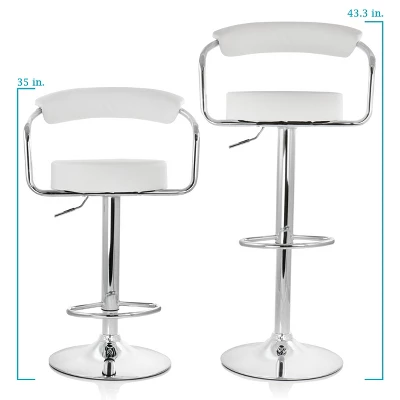 Add a stylish touch to your home bar or kitchen counters with the Elama 2 Piece Faux Leather Retro Adjustable Bar Stool with Chrome Handles and Base. This set of chairs is uniquely retro shaped for a fun addition to any room. Swivel base is perfect for movability and adjustable height allows you to customize these stools to whatever height is most comfortable and convenient for your home counters. These adjustable chairs are crafted from quality metal and faux leather for a strong and long lasting design.