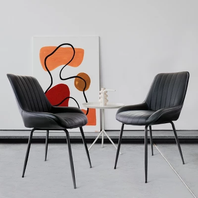 Add a touch of elegance to your living room or work space with the Elama 2 Piece Tufted Chair in Black with Metal Legs. This set of chairs is crafted with a velvet square stitch designed upper and sturdy metal legs. These chairs are perfect for relaxing on in front of the tv or getting some work done in style in your home office. Designed with a slight lean for back comfort.