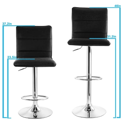 Add a stylish touch to your home bar or kitchen counters with the Elama 2 Piece Tufted Faux Leather Adjustable Bar Stool in Black with Chrome Base. No handles ensure these stools fit easily side by side without the bulkiness. Features a swivel base and adjustable height with foot rest. This set comes with all the tools you need to put these stools together for an easy and fast assembly. This chair is uniquely shaped for a comfortable fit while you’re seated. The Elama adjustable chair is also crafted from quality and sturdy metal for a strong and long-lasting design.
