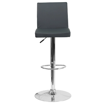 Relax and hang out in this adjustable height, panel back white barstool that proves simple doesn’t have to be boring. This piece would be a great fit for your home bar, game room or kitchen island. The seat and back are padded with 2″ of foam and upholstered in luxurious black vinyl. The swivel seat easily adjusts from counter to bar height using the convenient gas lift handle, located just below the seat. The chrome base and footrest complement the stool’s modern design and this stool will hold up to 330 pounds. Designed for residential use, this black vinyl barstool is an excellent choice when you want a contemporary look for your home.