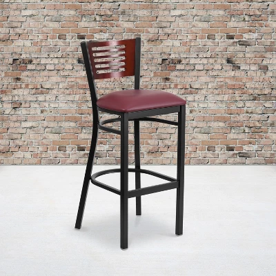 The metal barstool is a popular choice for furnishing restaurants, pool halls, lounges, bars and other high traffic establishments. This stool is easy to clean, which is an important aspect when it comes to a business. This stool was designed to withstand the daily rigors in the hospitality industry, but will also provide a chic look to your home. The thick, foam padded seat will keep users comfortable. The frame is stabilized using two welded support bars, which includes a footrest. The floor glides help protect your floors and ensure smooth gliding. The simple and lightweight design of this stool will not disappoint, whether used for residential or commercial grade use. Additional Features: Two Curved Support Bars, Footrest, 18 Gauge Steel Frame, Powder Coated Frame Finish, Floor Protector Plastic Glides, Designed for Commercial Use; Suitable for Home Use