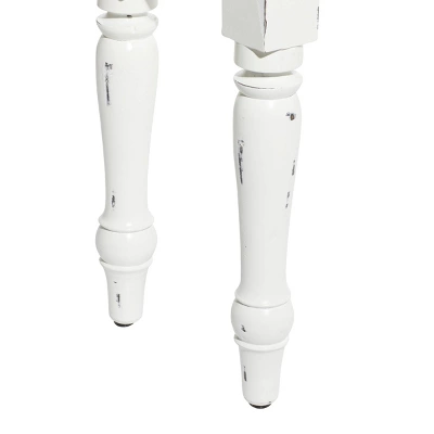 So take a load off and relax on this decorative bench. A small piece of furniture that make a big difference to give your home an instance refresh. This vintage piece will be a great addition to your chic farmhouse style home with dark solid-colored backgrounds. Designed with felt or rubber stoppers at the base that prevent scratching furniture and table tops, as well as sliding around. This item ships in 1 carton. Wooden bench features a seat with 1.12” thickness. Suitable for indoor use only. This item ships fully assembled in one piece. Maximum weight limit is 250 lbs. Made in Indonesia. Can accommodate 3 people. This is a single white colored entryway bench. Farmhouse style.