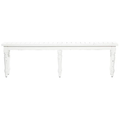 - •Wooden bench features a distressed white finish