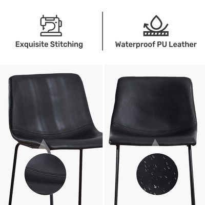 Stylish and versatile 2 pack faux leather bar stools, available in two timeless colors: classic brown and sleek black. These bar stools are the perfect addition to your home bar, kitchen island, or any high-top table or counter. Crafted from high-quality faux leather, these bar stools feature a comfortable and durable padded seat and backrest that’s perfect for long conversations over drinks or meals. The faux leather material also makes it easy to clean and maintain, ensuring that these bar stools look great for years to come. But that’s not all – these bar stools also feature a sturdy and sleek metal frame that provides a stable base and a modern industrial look. The metal frame is easy to assemble, ensuring that you can set up your new bar stools quickly and easily. Available in two heights: 26 inches and 30 inches (measured from the floor to the seat), you can choose the perfect height to match your counter or table. These bar stools are also designed with footrests to provide added comfort and support for your legs and feet. Whether you’re looking to upgrade your home bar, kitchen, or dining area, our 2 pack faux leather bar stools are the perfect choice. So why wait? Add these stylish and comfortable bar stools to your home today and start enjoying your drinks and meals in style! Note: Assembly is required for these bar stools. Tools and instructions are included for easy assembly.