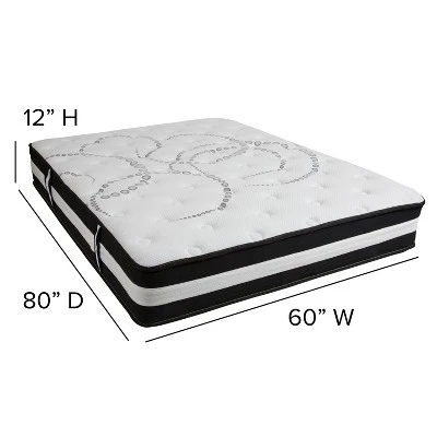 - 12″ Pocket Spring Mattress and 3″ Memory Foam Topper Bundled Set with CertiPUR-US Certified Foam