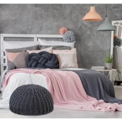 Hand crocheted and super soft, this floor pouf can easily be used as both a seat or an ottoman. Place around your coffee table for a game night, extra party seating to munch on appetizers or for laid back conversation with friends and family. With a variety of on trend colors, you’re sure to find one to match your decor.