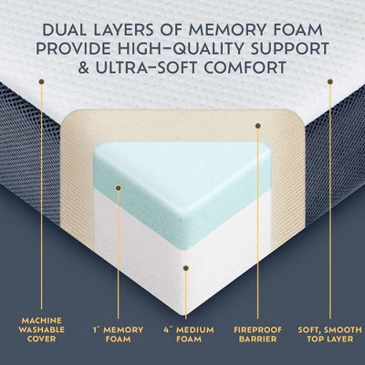 - Dual layers of memory foam that provide high-quality support and ultra-soft comfort