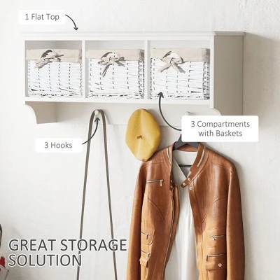 The entryway is the first thing that people see when they step into our home but far too often it becomes a dumping ground for family belongings tracked in from the outside. HomCom presents a viable solution for transforming this space with our rustic storage shelf which allows you to neatly store and organize your indoor and outdoor accessories (like car keys, dog leashes, shoes, coats, and purses). Wicker baskets with washable liners add a touch of texture and color, and can be removed to be used as storage baskets elsewhere if needed. The open upper shelf is perfect as a display platform for plants, photos, or anything you want the world to see.