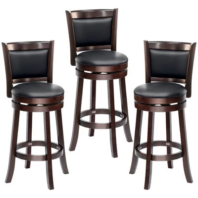 HOMCOM Classic Bar Stool Swivel Barstool With PU Leather Upholstered Mid-Back And Footrest, 30.25 Inch Seat Height, Set Of 3, Black