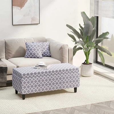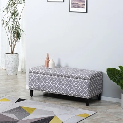 HOMCOM Large 42″ Tufted Linen Fabric Upholstery Storage Ottoman Bench With Lift-top For Living Room, Entryway, Or Bedroom – Gray Lattice