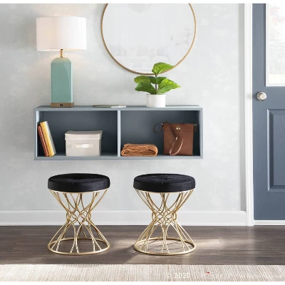 With a stunning silhouette, the Jasmine Vanity Stool by LumiSource offers style and practicality. Resting on a sleek and intricate gold metal base the button-tufted seat is upholstered in a stylish velvet. Use it for extra seating or as a stool for a vanity. Available in your choice of multiplecolor options, you can use this glamorous vanity stool in a variety of spaces.