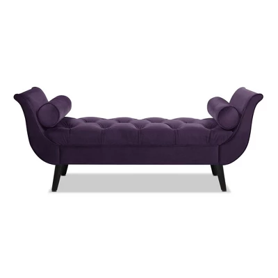 Add a modern glam twist to any space with the Alma Flared Arm Bench by Jennifer Taylor Home. The graceful silhouette is punctuated with two matching bolster pillows and tapered Mid-Century Modern legs for an occasional sitting bench that is sure to impress. The Alma Bench is perfectly suited at the end of the bed, in the entryway, or to complete a living room seating arrangement. The seat is tufted in a lovely diamond button technique that is stylish and comfortable. Features: – 64.5 inches length including the flared armrests -Seat height of 17 inches from floor to seat – Two matching round bolster pillows – Medium firm seat feel for supportive comfort – Espresso Black Brown solid wood legs – Available in plush velvet and polyester upholstery – Classic, Mid-Century Modern, Glam styles Details: – Overall Dimensions: 64.5″WX20″DX25.5″H – Overall Weight: 45LBS – Weight Capacity: 300 LBS – Number of Shipping Boxes: 1 – Assembly required – Care Instructions: Dry clean or spot clean only *Fabric swatch available upon request
