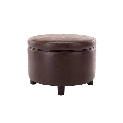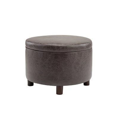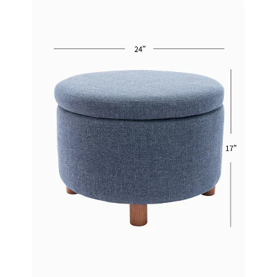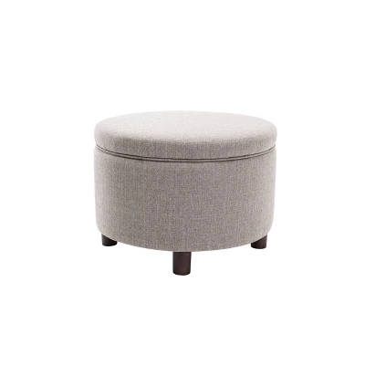This classic 24″ round storage ottoman will have lasting function and be a timeless style addition to your home. Designed to be an easy storage solution in your bedroom, living room, or entryway – use for storing blankets, shoes, pillows, or remotes. Offered in classic fabrics that will be an easy compliment to any interior style. Easy to care for and maintain.