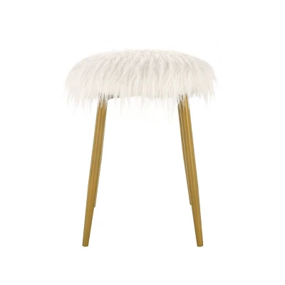 The Madison ottoman is a serious conversation starter. With gleaming gold tone legs and a fuzzy white faux fur topper, it will make your living room the center of attention. This elegant accent piece provides both functionality and a focal point of color and style that seamlessly blend with your main furniture to create a dynamic and cozy interior space to come home to