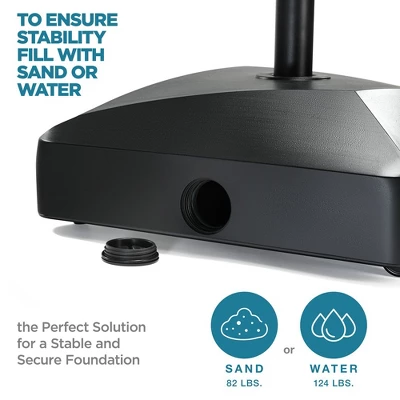 - Windproof Design – This windproof weighted umbrella base can be filled with up to 123.2 lbs. of sand or 37 liters of water to keep your umbrella upright and in place during windy conditions.
