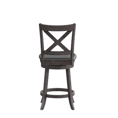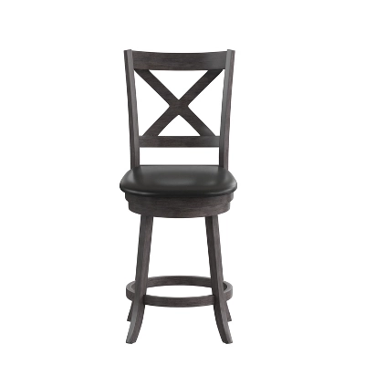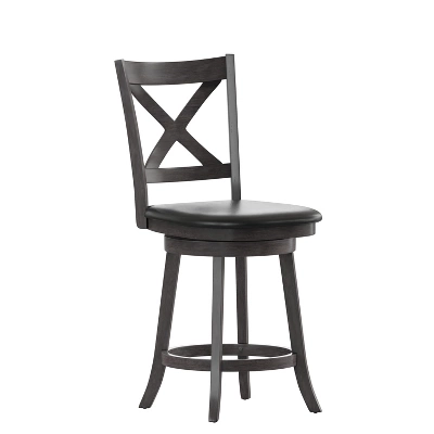 Upgrade the look of our kitchen island, dining room, or provide extra seating options with this classic wood counter height stool that is a welcome addition to any living space. The richly hued wood grain look, available in 2 finishes, creates a warm, inviting ambiance. Constructed of solid wood, boasting 360° swivel, and an integrated footrest for additional comfort, this chair provides a comfortable and stable seating experience.