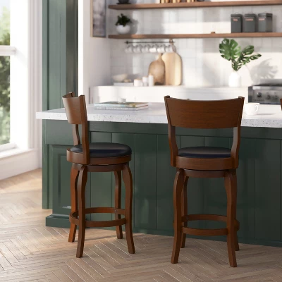 - Classic Style Solid Wood Ladderback Swivel Counter Height Stool