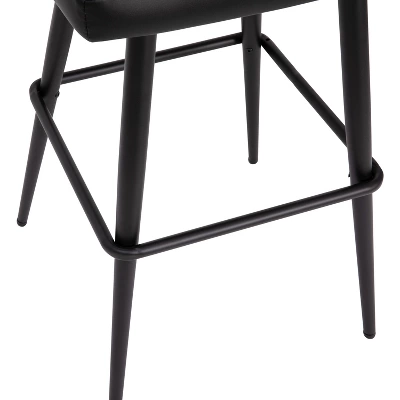 Elegant in any 21st century setting, this set of 2 modern barstools is a precise representation of stylish design. Graceful curves atop a sturdy steel base gives a worry-free seating experience. Soft but durable faux leather cleans easily with a dry cloth and gives these stools, available in bar and counter heights, distinctive character and a lasting quality. Integrated floor glides on these easily assembled stools prevent hard flooring damage.