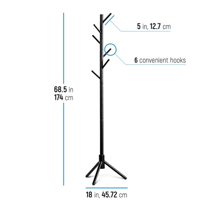 - Convenience-Rack stands on 3 wooden legs to balance the weight and support heavy garments. It is travel friendly as it can be instantly assembled and is great for home, office, foyer, or anywhere your bags and coats need a home. Quick and Easy Assembly-Coat rack comes disassembled but assembling it is easier than ever. It includes a detailed assembly guide with simple step-by-step instructions. No tools required