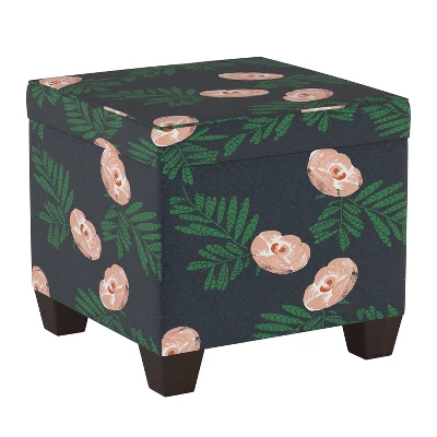 This Fairland Square Storage Ottoman from Skyline Furniture is a versatile piece of furniture that you can easily move around to any room in your home as needed. It has a simple square design and comes upholstered in a variety of different patterns, so you can find just the right look for your decor style. It comes with a removable padded lid that reveals a small storage space that’s perfect for keep small items tucked out of the way. Made with a sturdy wood frame and solid tapered square peg legs for stability, this small square storage ottoman pairs functionality with style perfectly.