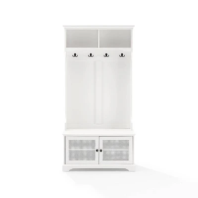 All you need to head out the door is right where you want it with the Sarah Hall Tree. The perfect entryway landing zone, this hall tree offers open shelving, hooks for hanging coats and bags, plus a lower cabinet for storing shoes. Featuring traditional design elements like wicker caning and crown molding, this classic foyer staple adds charm to home organization.