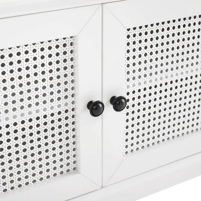 - Cabinet doors have wicker caning and magnetic closures